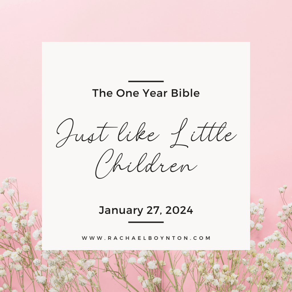 Today I’d encourage you to ask the Lord what it would mean in your life to “become like little children.” Would that mean letting go of hurt you had experienced to trust like a child? Would it mean embracing your playful nature in Him? Would it mean accepting instruction without questioning or need for understanding? The Lord will show you what this looks like in your life, we need only to step out in faith to ask it.